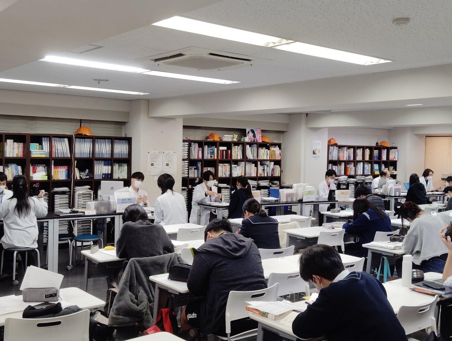 また、子別指導の形式のため、いわゆる「クラス」の形式を取っていません。中学生から高卒生までが同じ教室で、各自の学習計画に合わせて集中して勉強しています。
