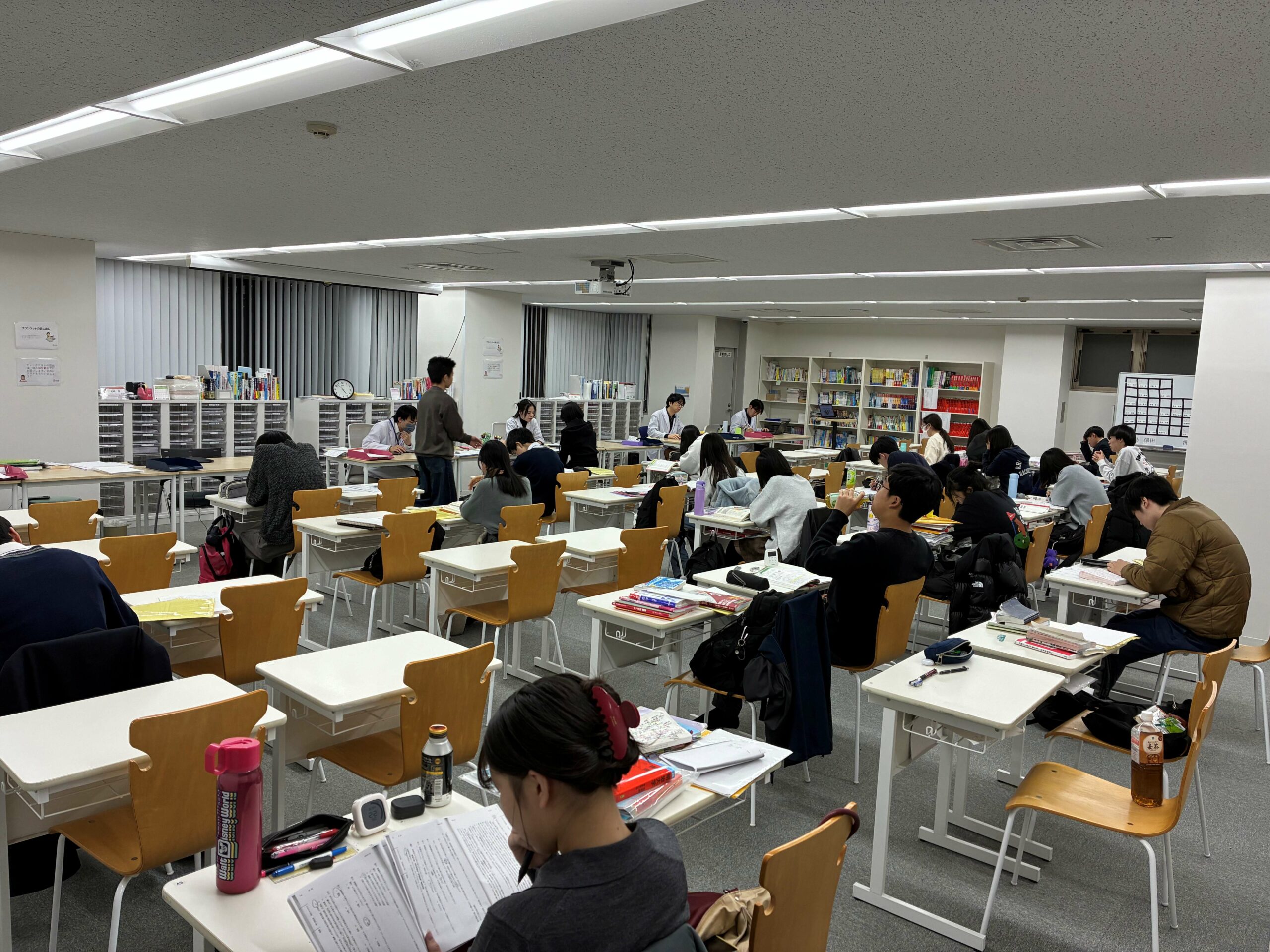 また、子別指導の形式のため、いわゆる「クラス」の形式を取っていません。中学生から高卒生までが同じ教室で、各自の学習計画に合わせて集中して勉強しています。